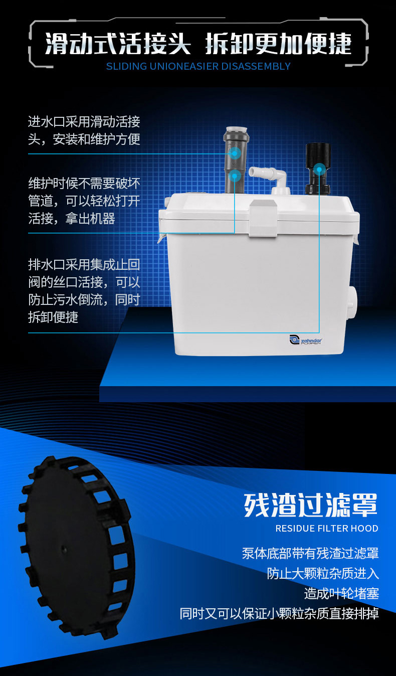 德国泽德SWH400厨房专用污水提升器,针对重油污的厨房而设计的,排放淋浴,洗衣机,脸盆等等不含粪便的生活废水。