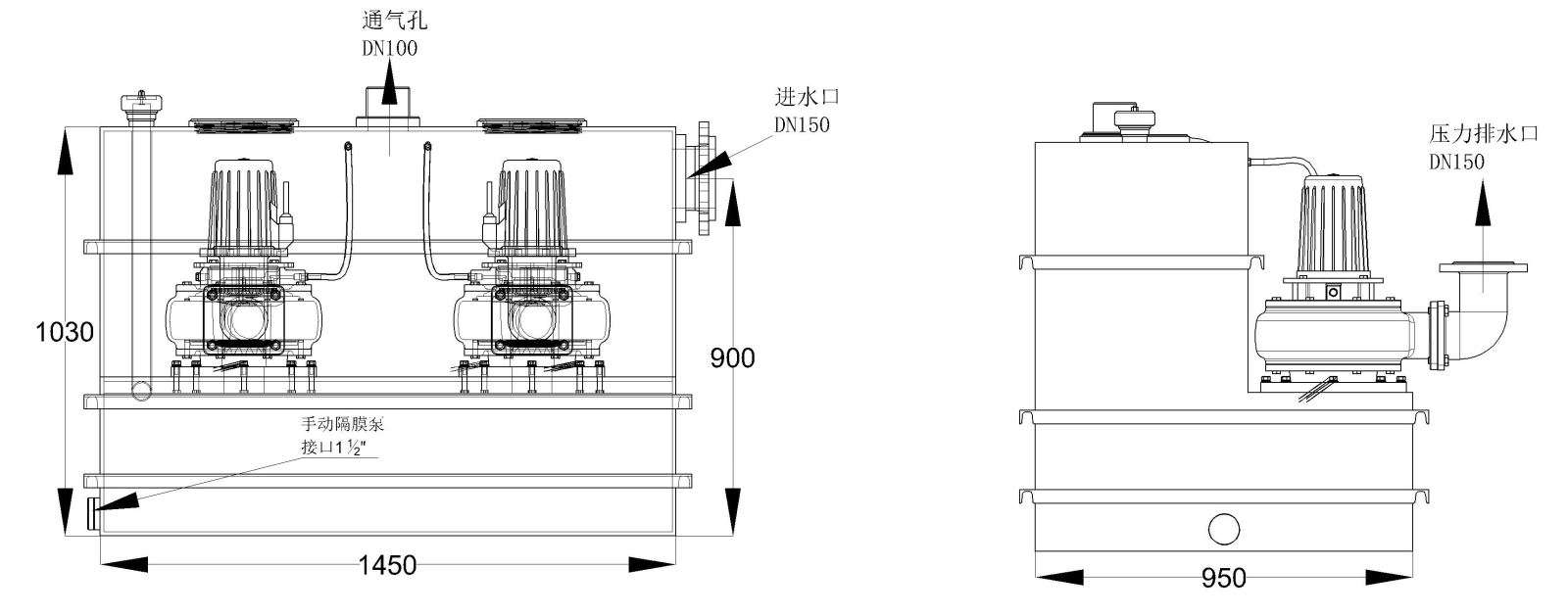 •额外的1½“手动隔膜泵接口